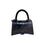 Balenciaga HOURGLASS Крокодиловый узор Тисненый Телячья кожа Сумка через плечо Сумка Маленькая Женская Черная