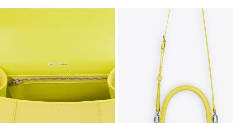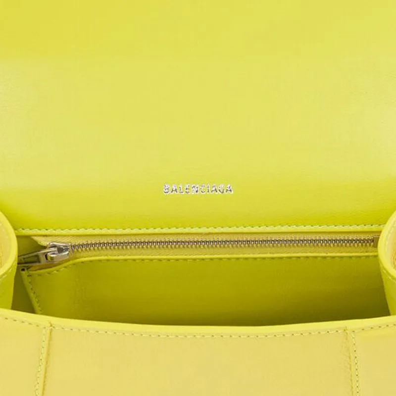 Balenciaga HOURGLASS Коровья кожа крупнозернистая текстура сумка Hourglass сумка сумка через плечо маленькая женская желтая
