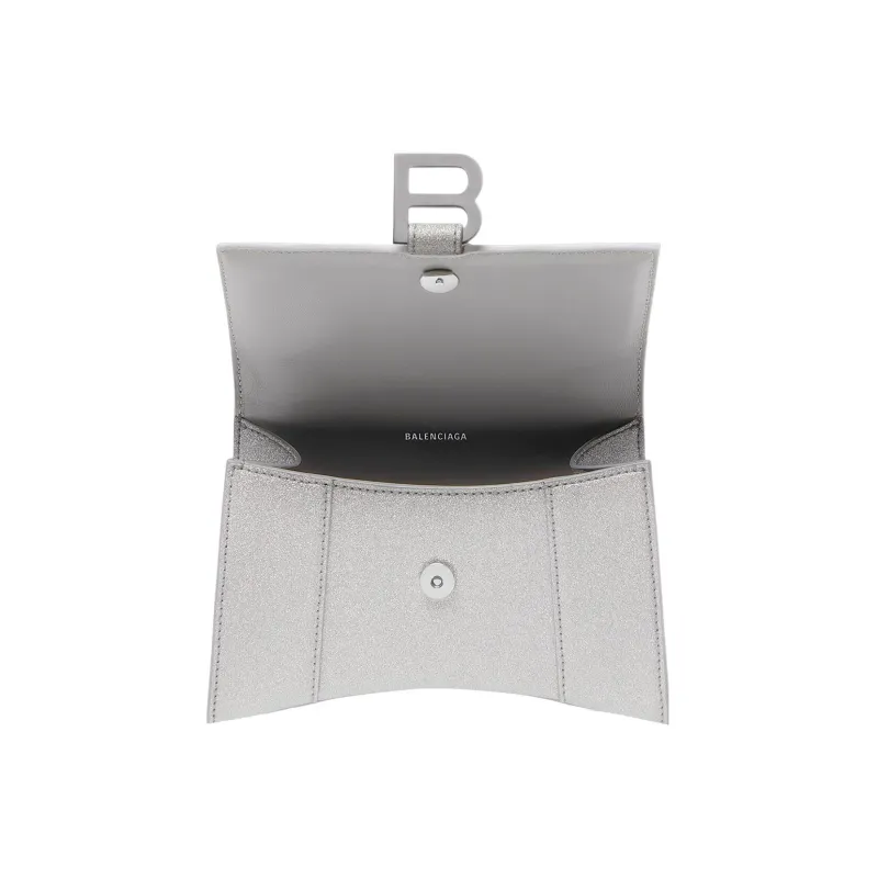 Balenciaga HOURGLASS Полиэстер с Полиуретаном Сумка через плечо Сумка Экстра Маленькая Женская Серебряная