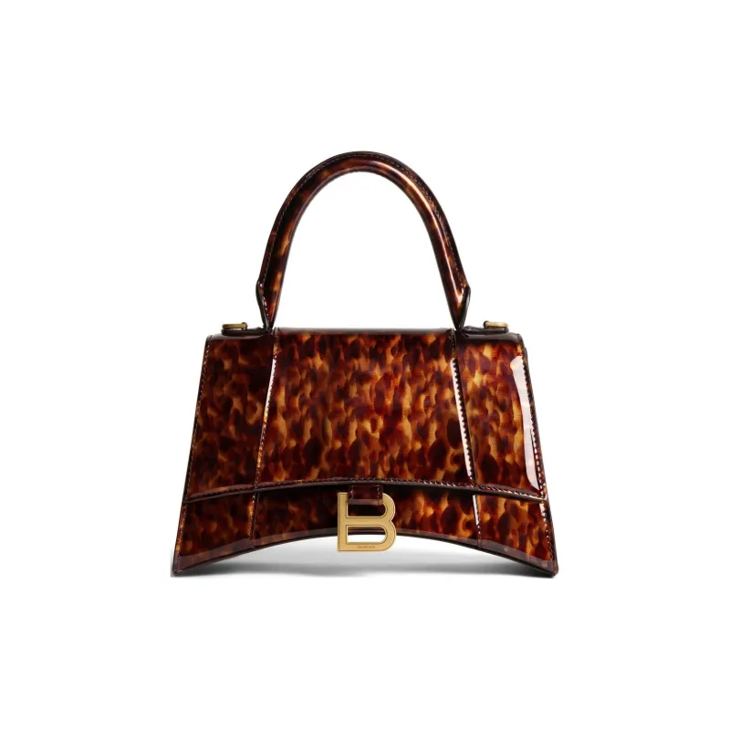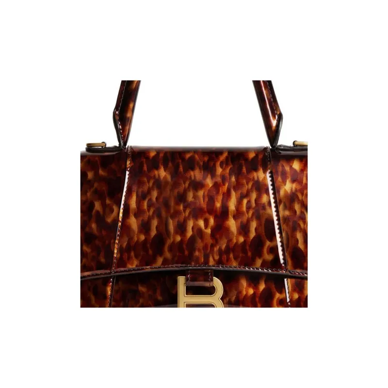 Balenciaga HOURGLASS Черепаховая оболочка Узор Принт Коровья кожа Сумка через плечо Сумка Маленькая Женская Коричневая