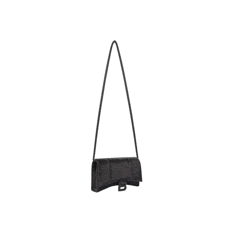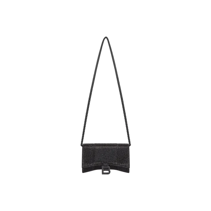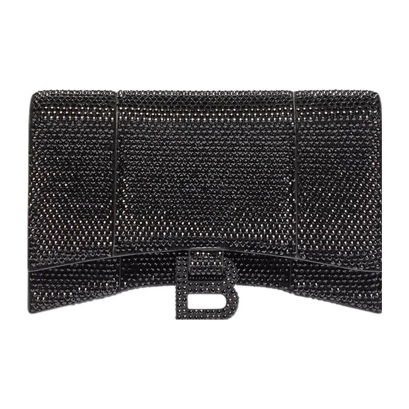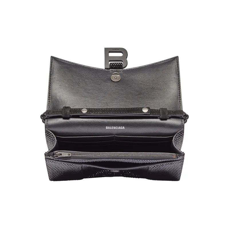 Balenciaga HOURGLASS Замша Телячья кожа Сумка через плечо Кошелек Женские Черный
