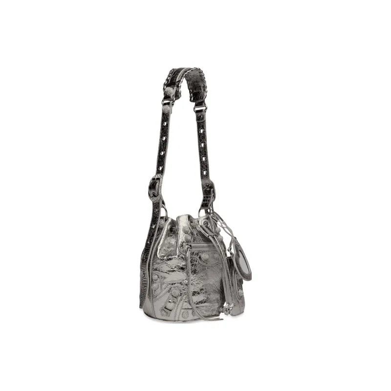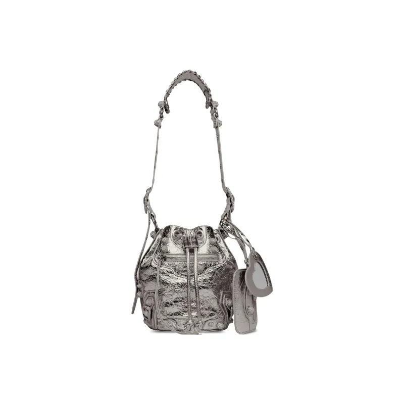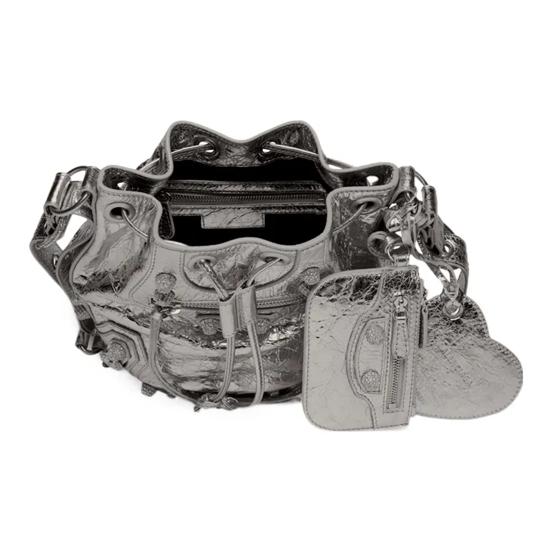 Balenciaga Lambskin Bucket Bag Crossbody One Shoulder Bag Extra Small Women's Silver Баленсиага Lambskin Ведро Сумка Через плечо Одно плечо Сумка Экстра Маленькая Женская Серебряный