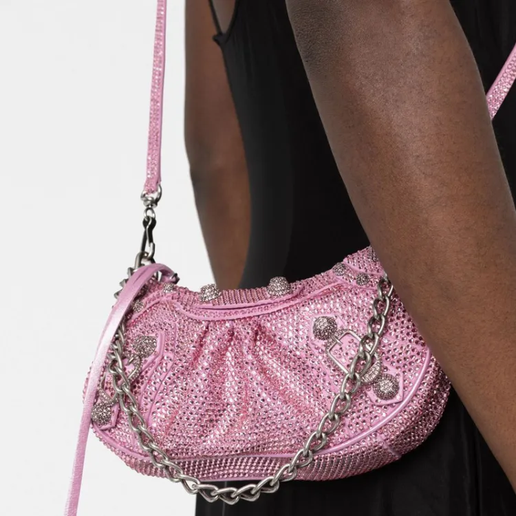 Balenciaga Le Cagole Телячья кожа Байкер Сумка Пельменная Сумка Портативная Сумка через плечо Сумка через плечо Стандартная Женская Светло-розовая
