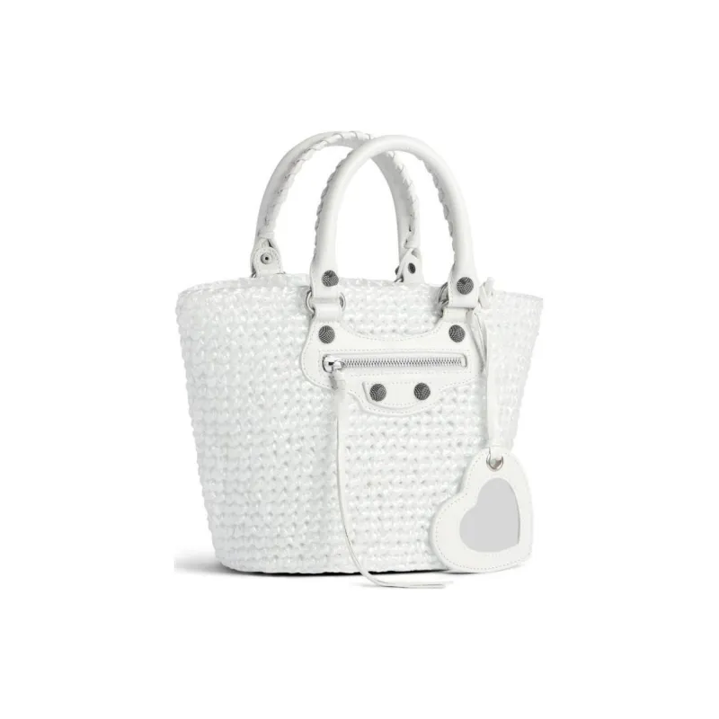 Balenciaga Le Cagole Прозрачный Нейлон с Эффектом Faux Трава Сумка через плечо Сумка Маленькая Женская Белая