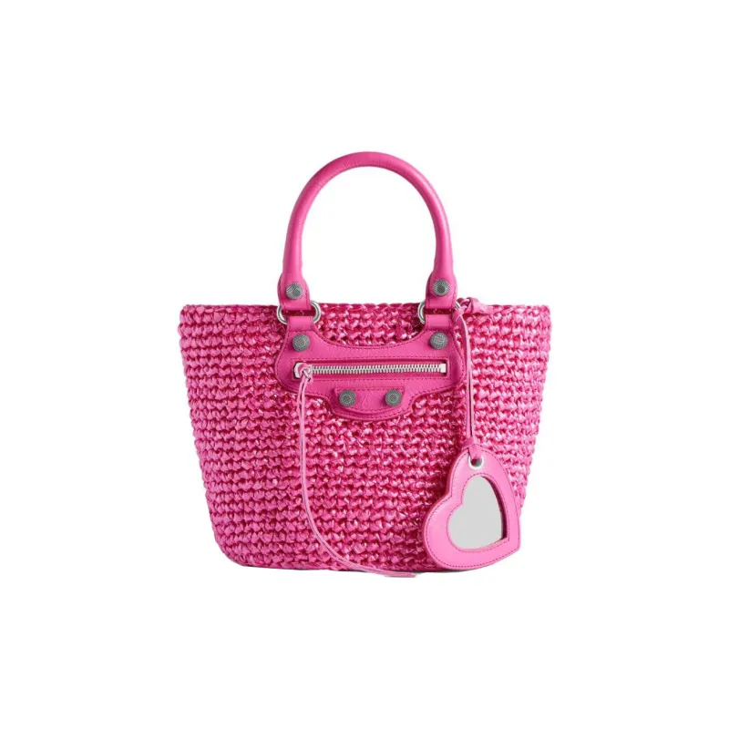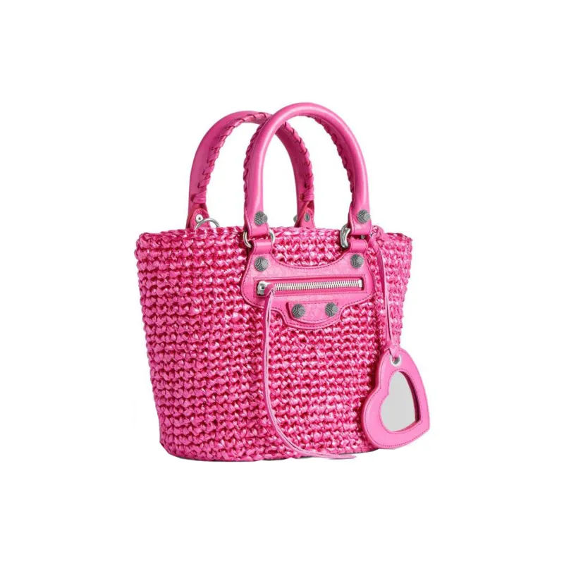 Balenciaga Le Cagole Прозрачный Нейлон Сумка Tote с искусственной травой Одиночная Сумка через плечо Маленькая Женская Розовая
