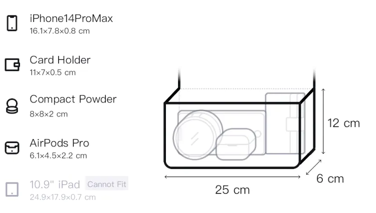 Д25*Ш6*В12см