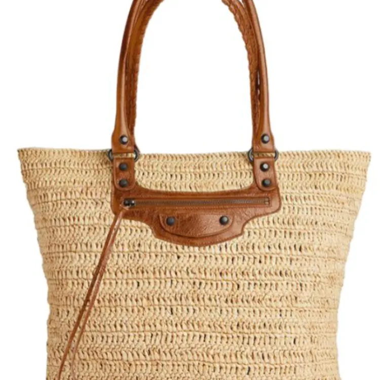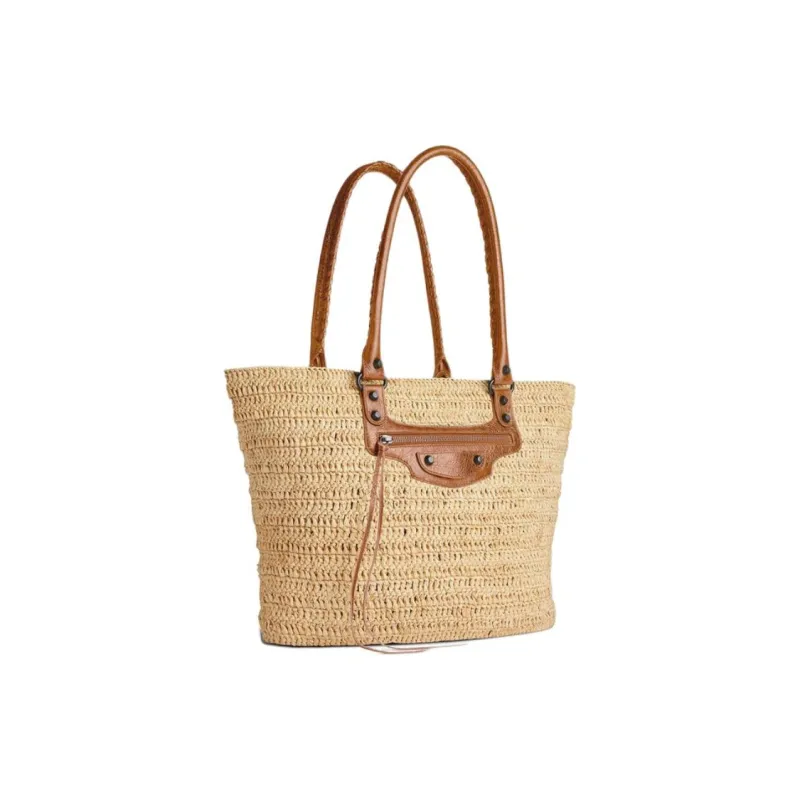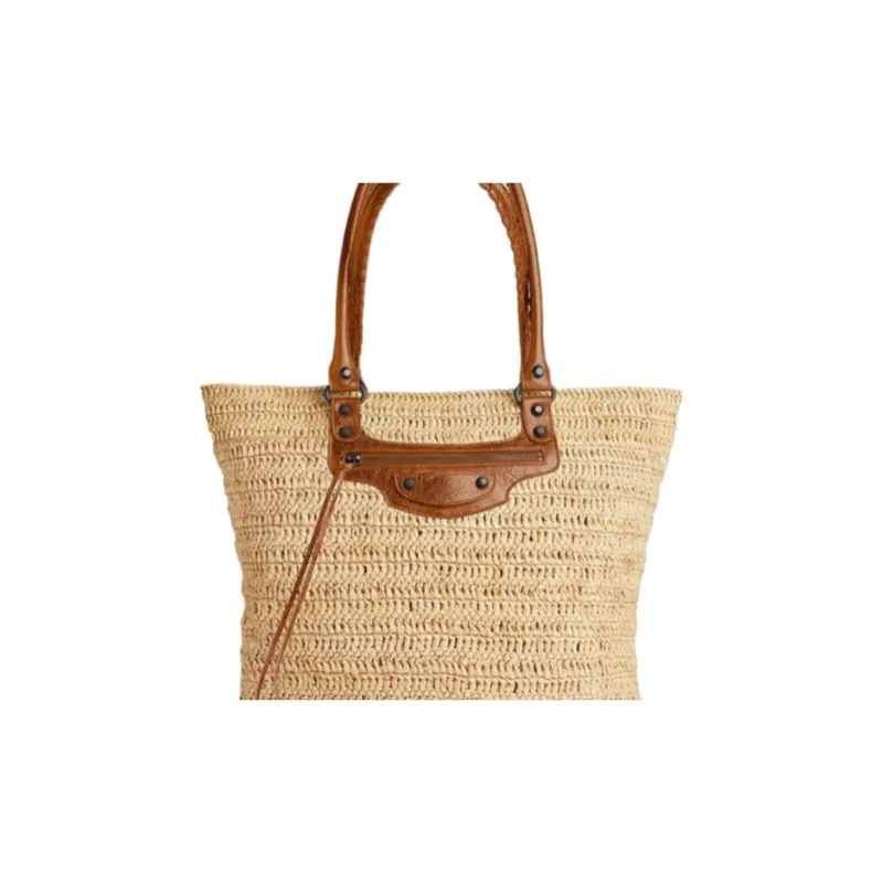 Balenciaga Sheepskin Straw Woven Bag Medium Women's Natural
