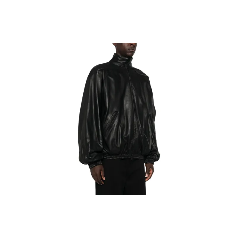 Balenciaga FW24 Кожа Куртка Свободного кроя Мужская Черная