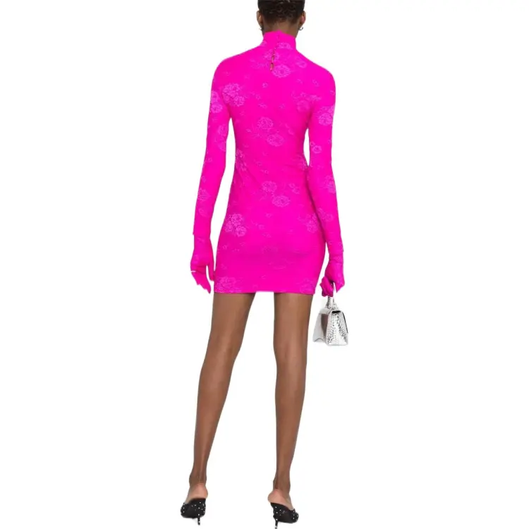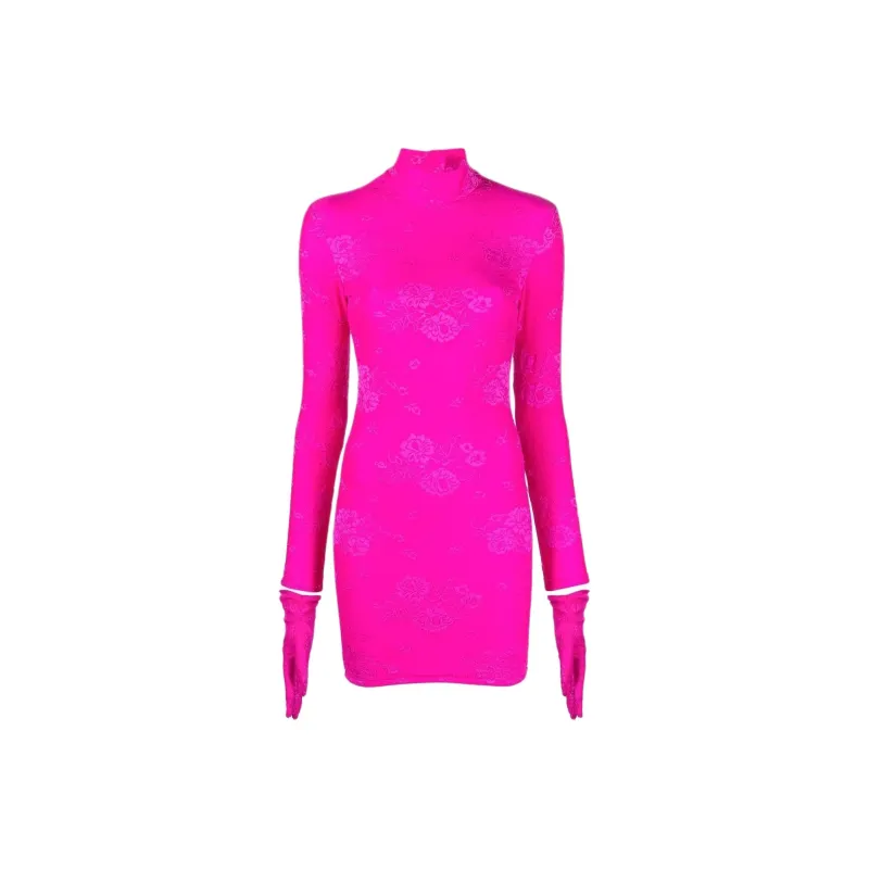 Balenciaga Розово-красные Женские Длинные Платья с Длинными Рукавами