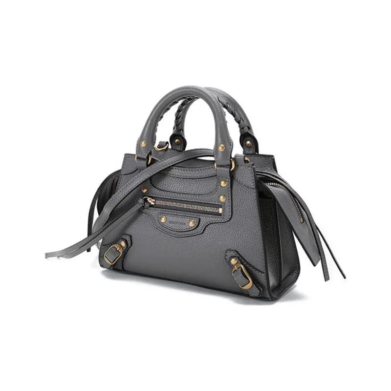 Balenciaga Neo Classic Коровья кожа Байкер Сумка Портативная сумка через плечо Мини женская темно-серый
