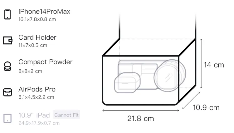 Д21,8*Ш10,9*В14см