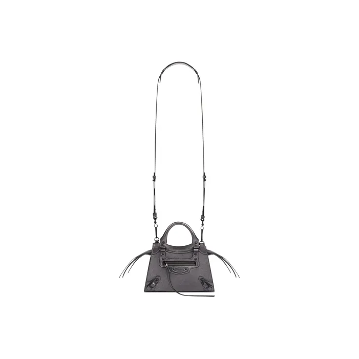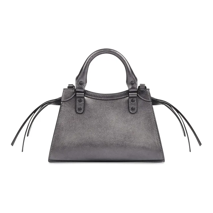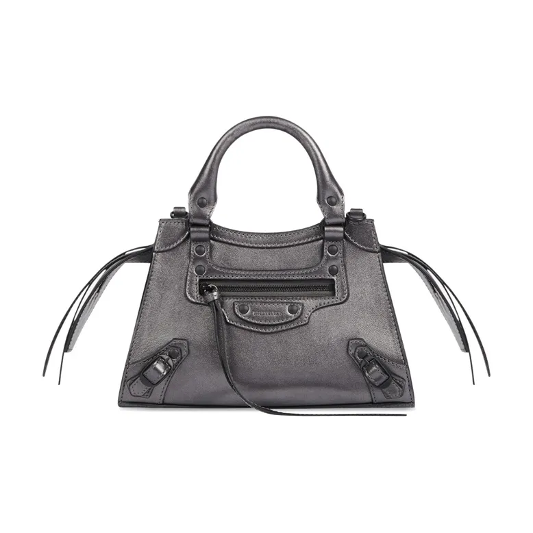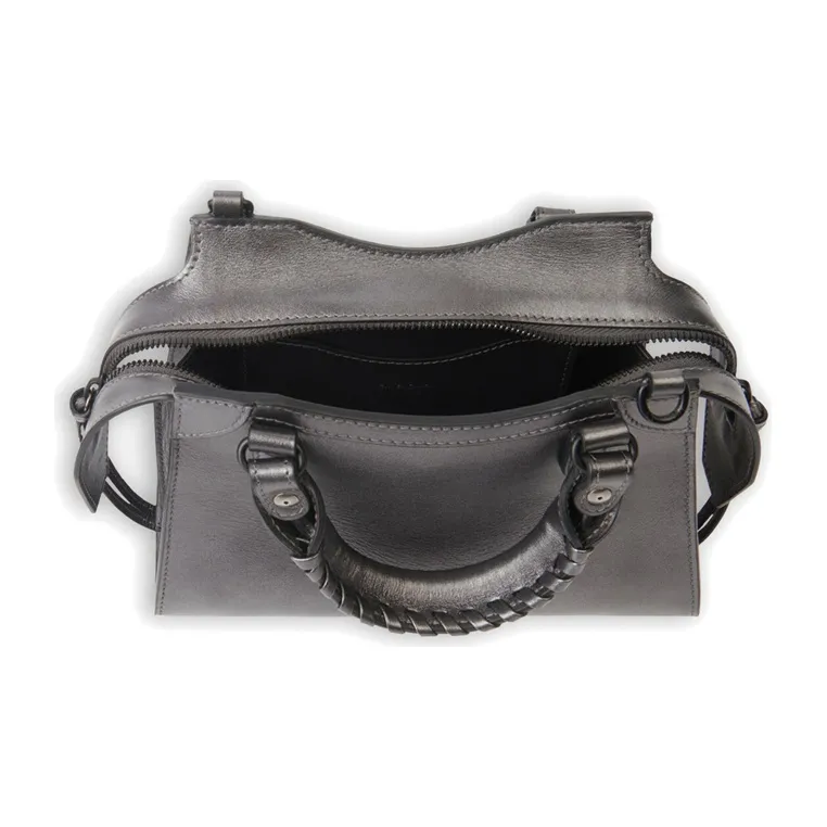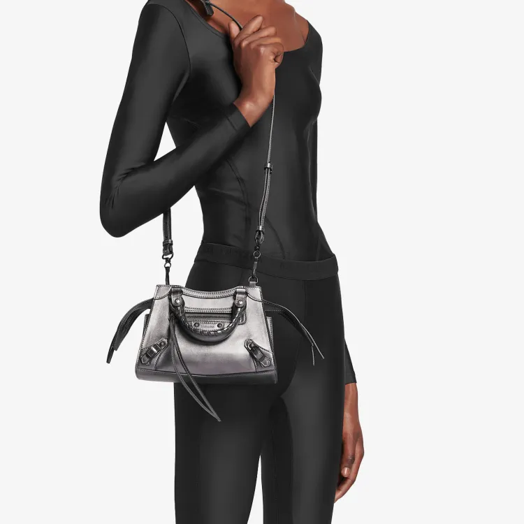 Balenciaga Neo Classic Коровья кожа Сумка Сумка через плечо Мини Сумка Женская Темно-Серебряная