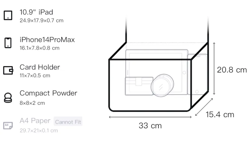 Д33*Ш15,4*В20,8 см