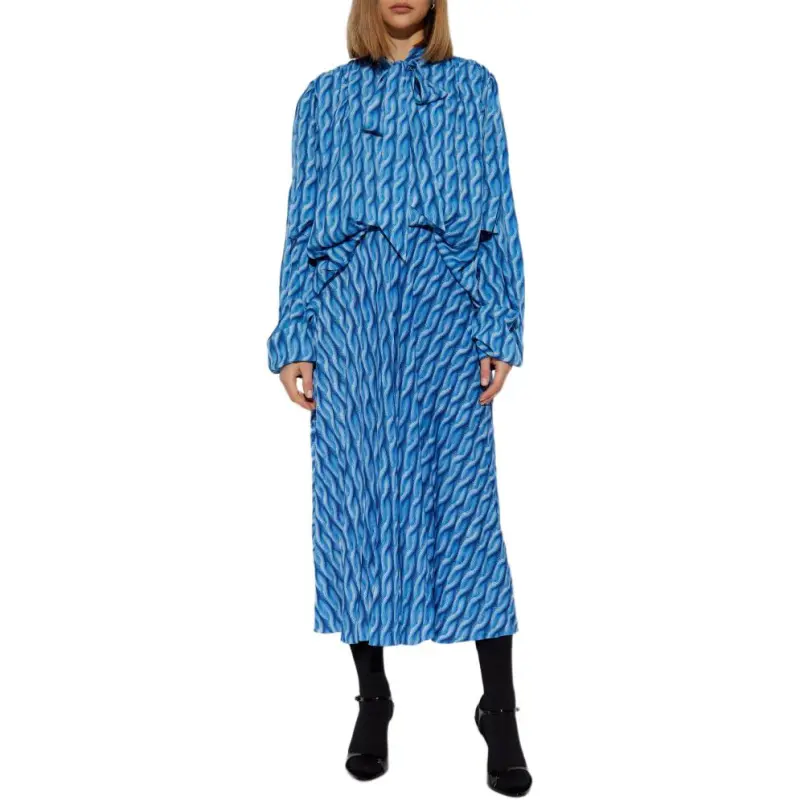 Balenciaga SS25 Длинное платье с длинными рукавами обычный крой женское небесно-голубой