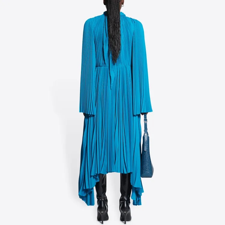 Balenciaga Red Carpet SS22 Длинное платье с длинными рукавами женское синее
