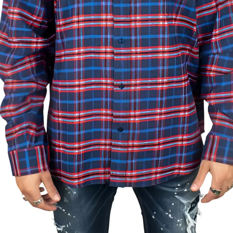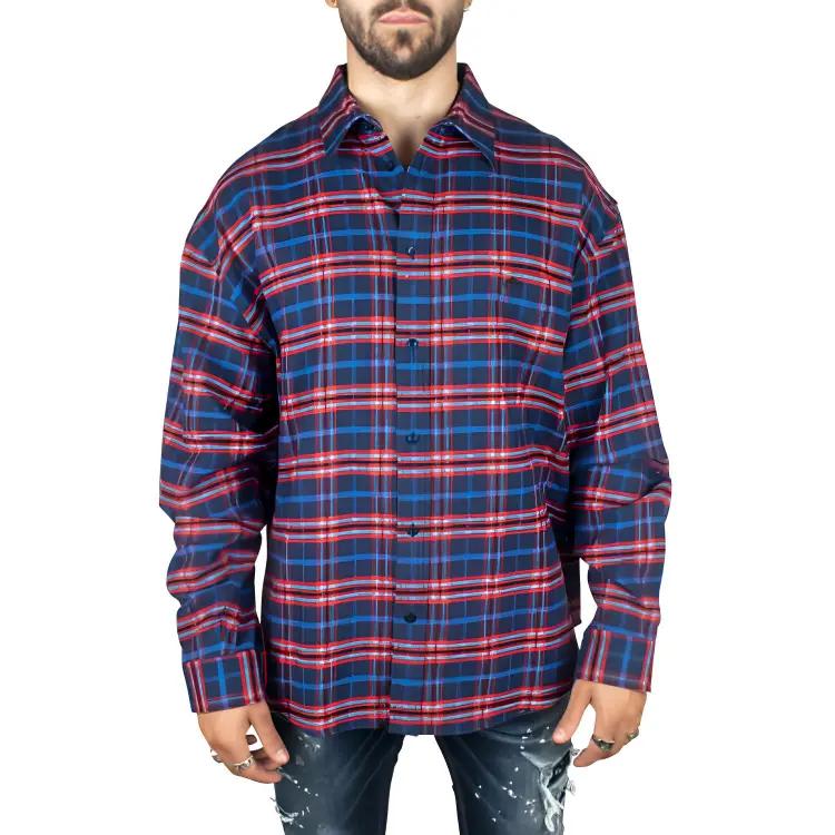 Balenciaga Рубашка Мужская Красная Синяя