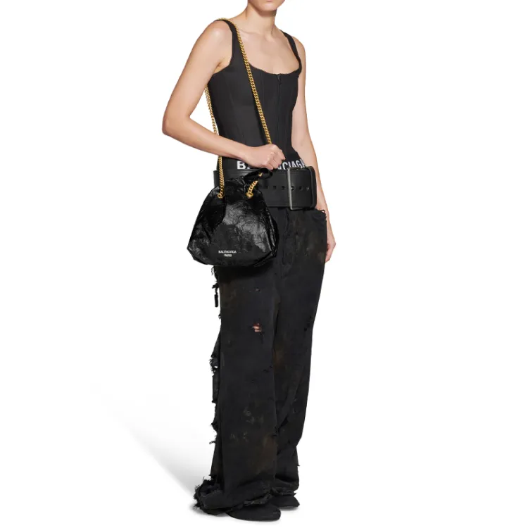 Balenciaga Crush Матовый Телячья кожа Портативный Сумка через плечо Сумка на плечо Маленькая Женская Черная