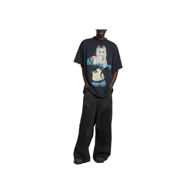 Balenciaga SS26 T Рубашка Свободного кроя Мужская Черная Синяя