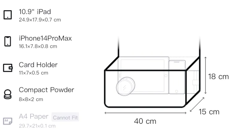 Длина 40 см * Ширина 15 см * Высота 18 см