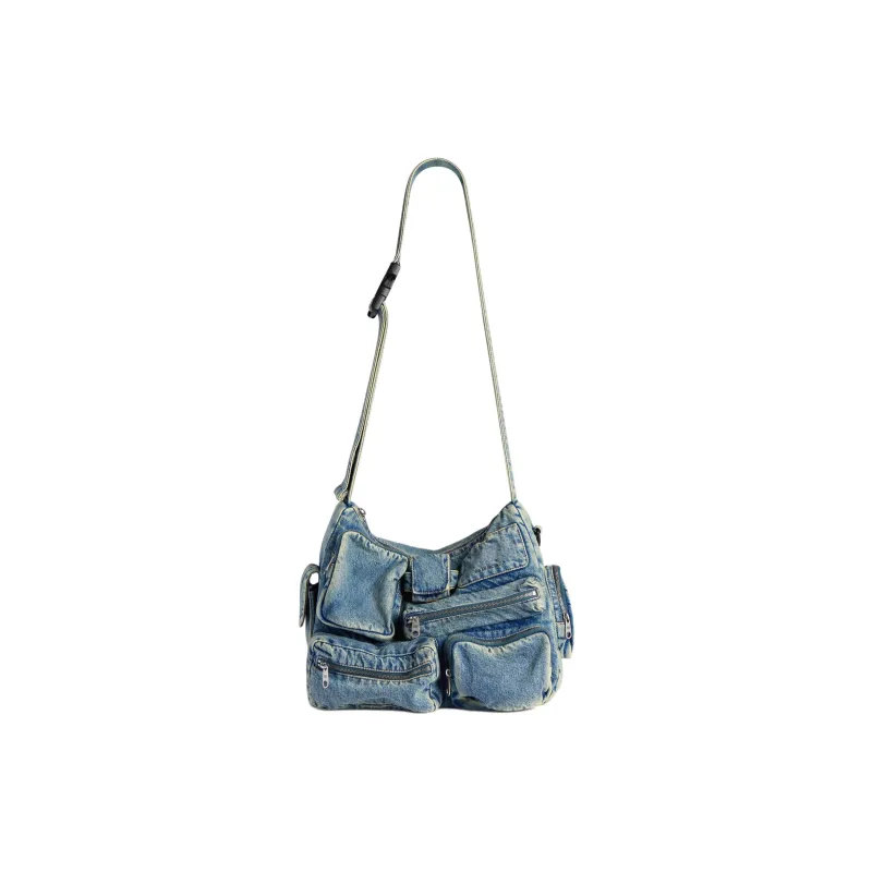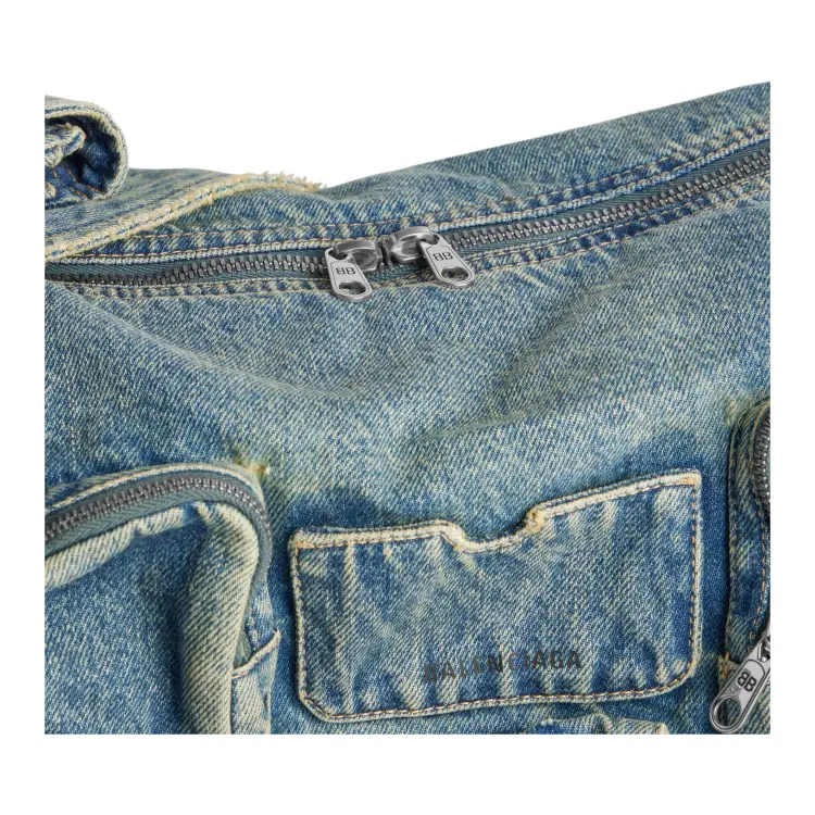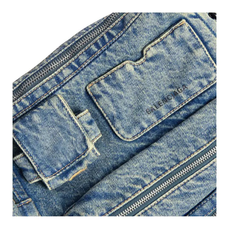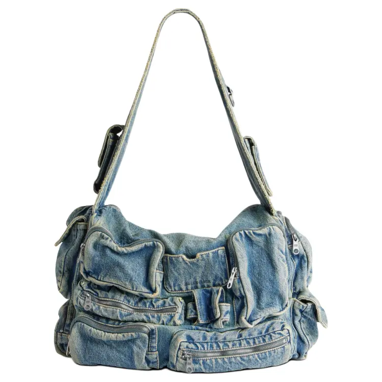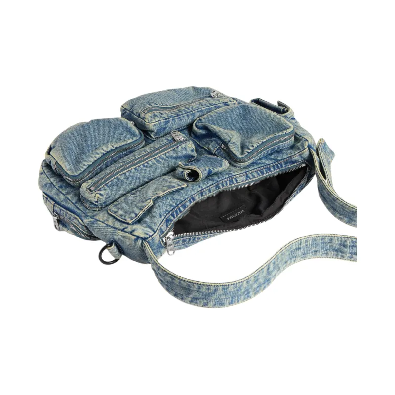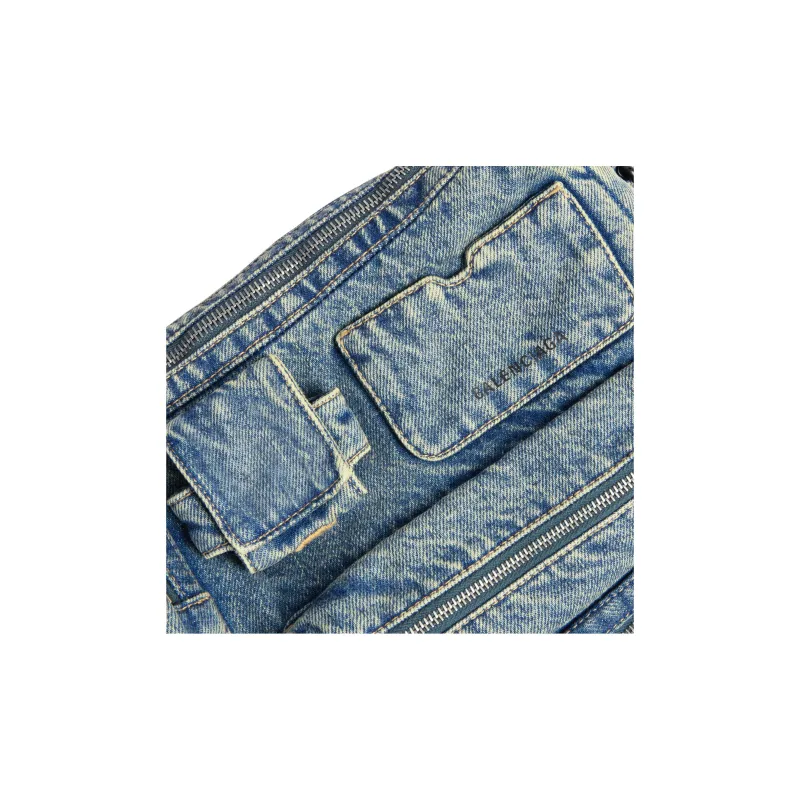 Balenciaga Superbusy Выстиранный Деним Курьерская Сумка Плечевая Сумка Стандартная Мужская Винтаж Синий