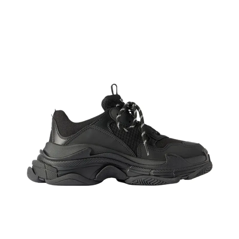 Balenciaga Triple S Low Топ Толстая подошва Кроссовки Мужские Черные