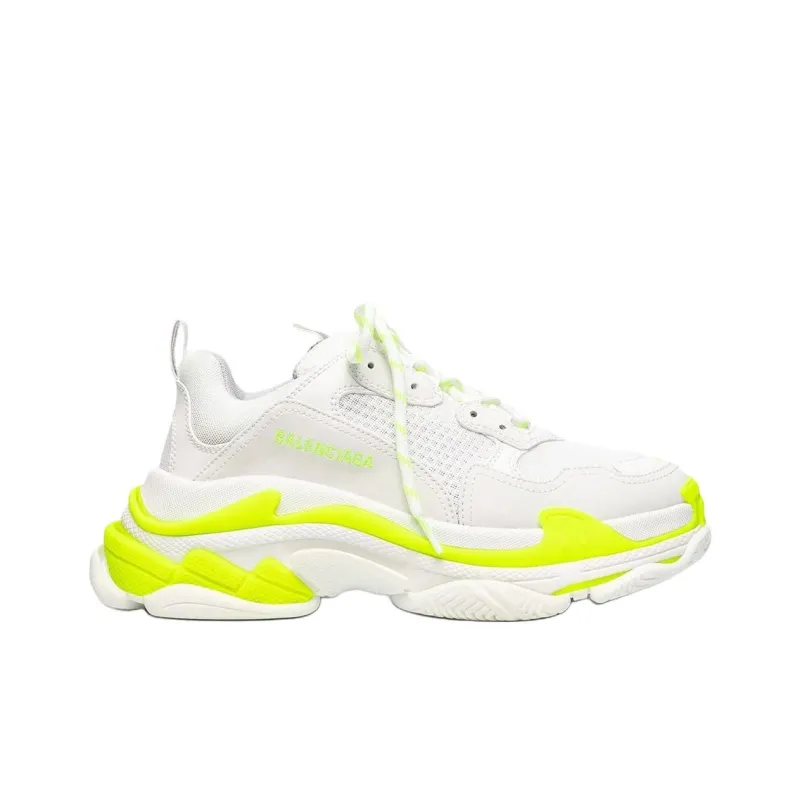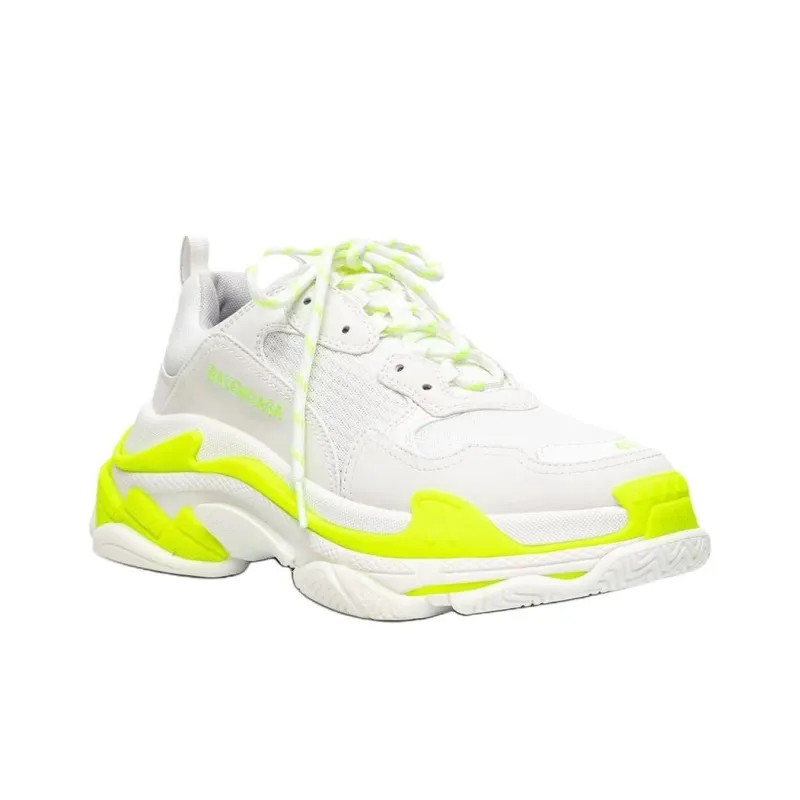 Balenciaga Triple S Low Топ Толстая подошва Кроссовки Мужские Неоново-желтые