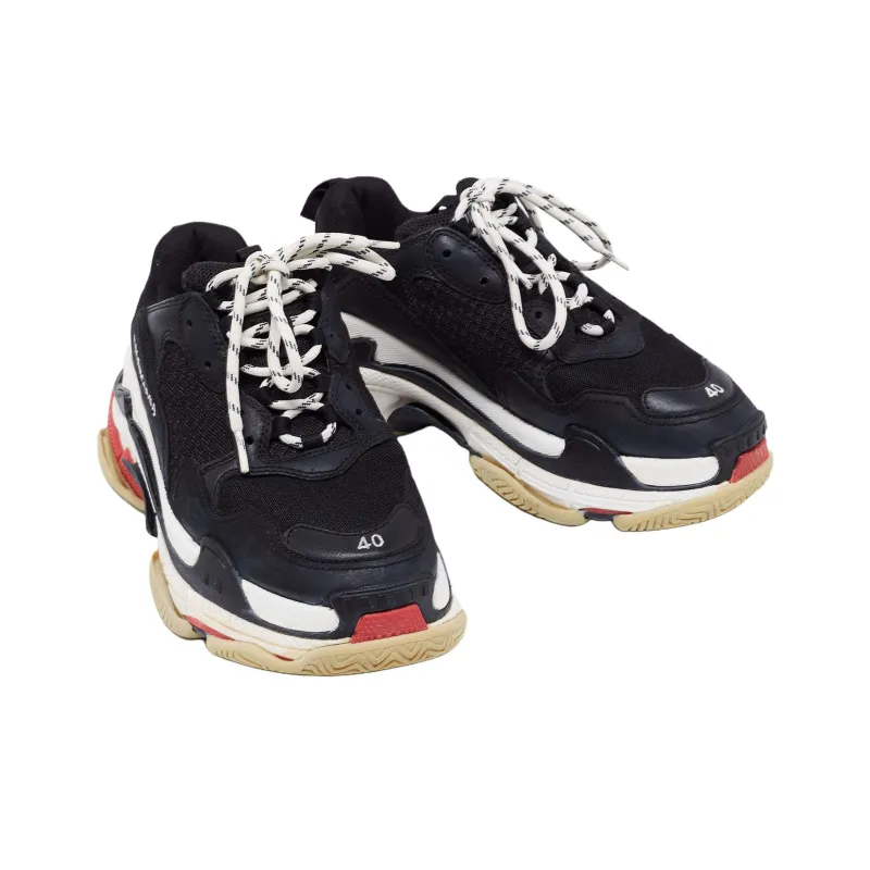 Balenciaga Triple S Low Топ Толстая подошва Кроссовки Мужские Черные Красные