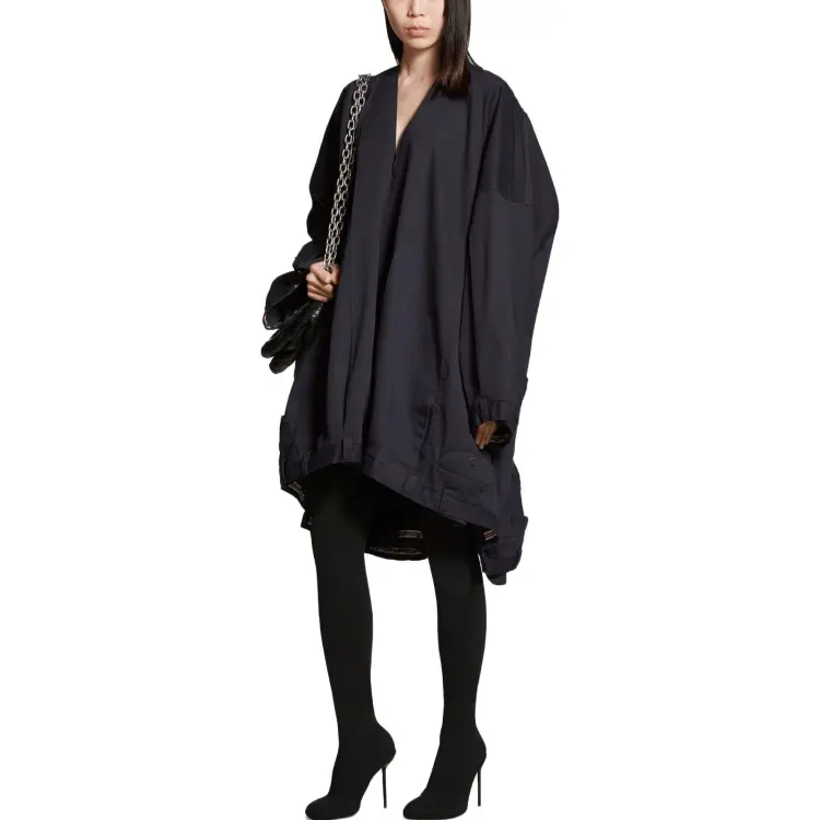 Платье Balenciaga FW23 Upcycled с длинными рукавами темно-синий длинный рукав свободный крой женское морской синий