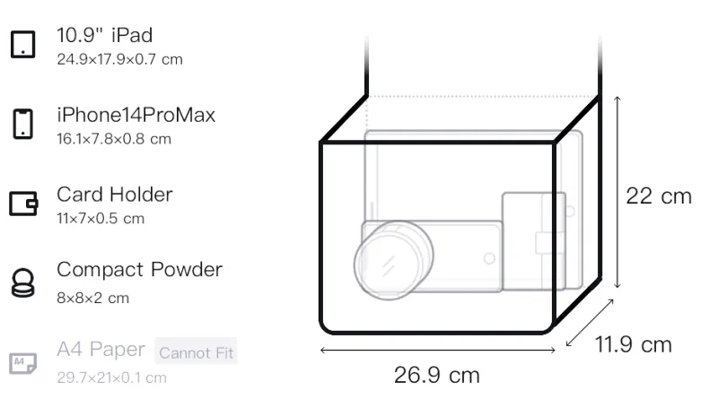 Д26,9*Ш11,9*В22см