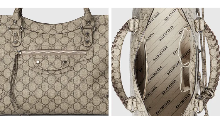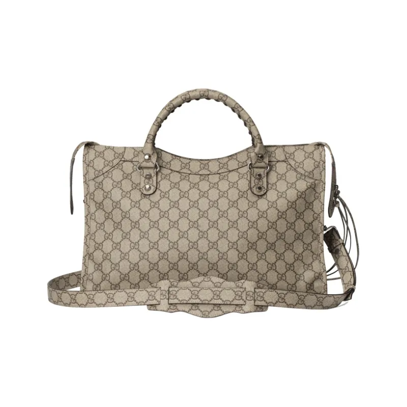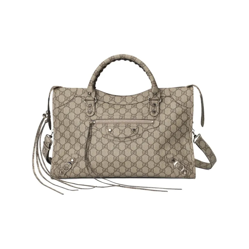 GUCCI Balenciaga Коллаборация Холст с кожей Сумка из холста Байкер Сумка Сумка через плечо Сумка среднего размера