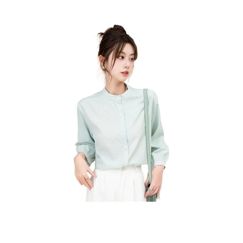BALENO Рубашка Осенняя Женская Светло-Зеленая Клетка