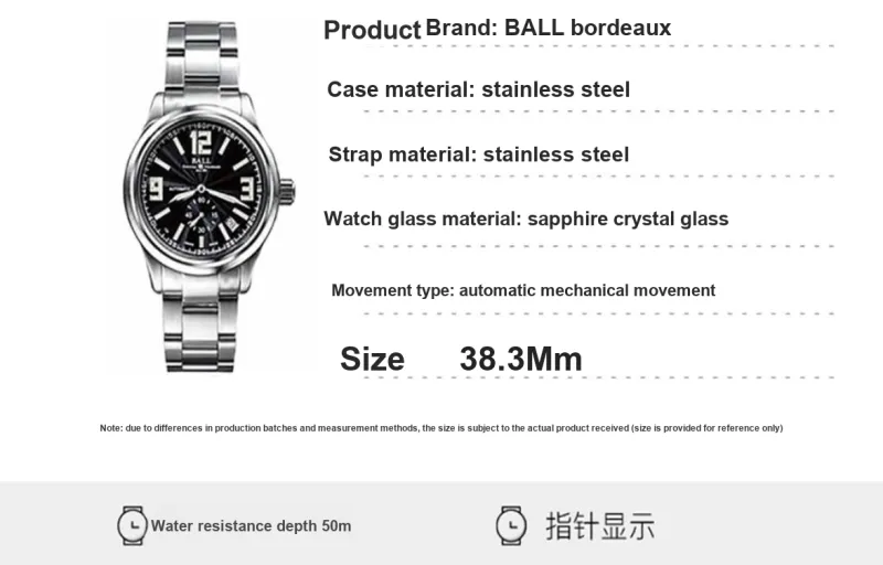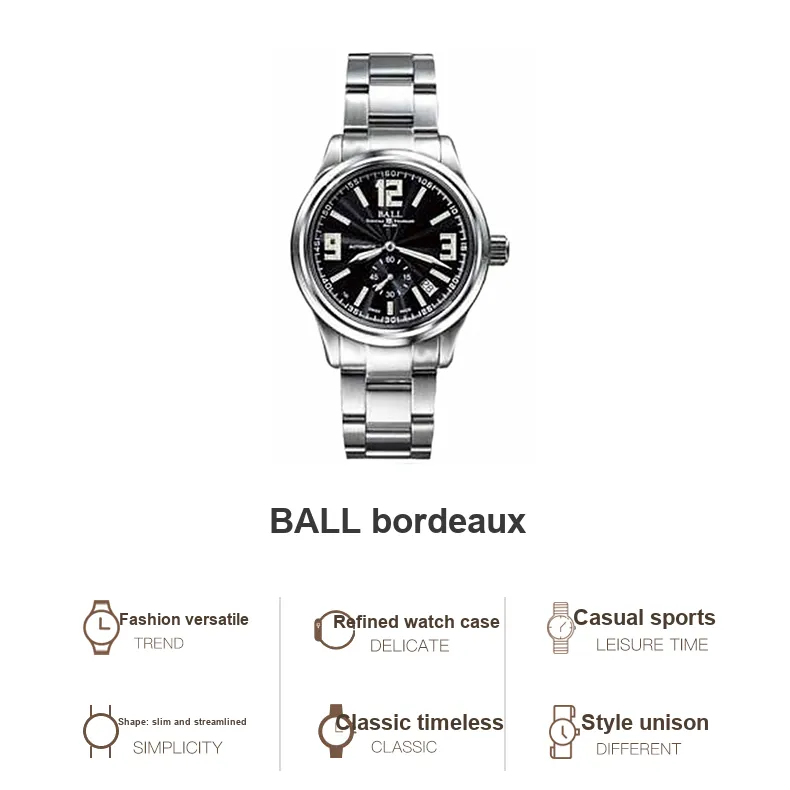 Шар Railroad Official Collection Автоматический Механический Механизм Мужские Часы Часы 38,3 мм Черный Циферблат