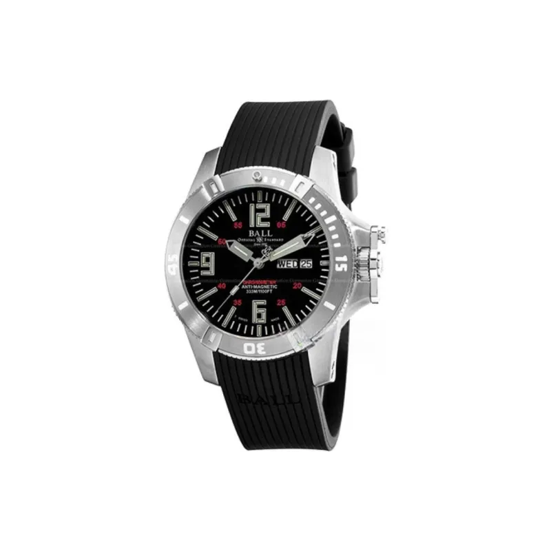 Шар Автоматический Механический Механизм Мужские Часы Часы 41,5 мм Черный Циферблат Корпус из Нержавеющей Стали Резиновый Ремешок