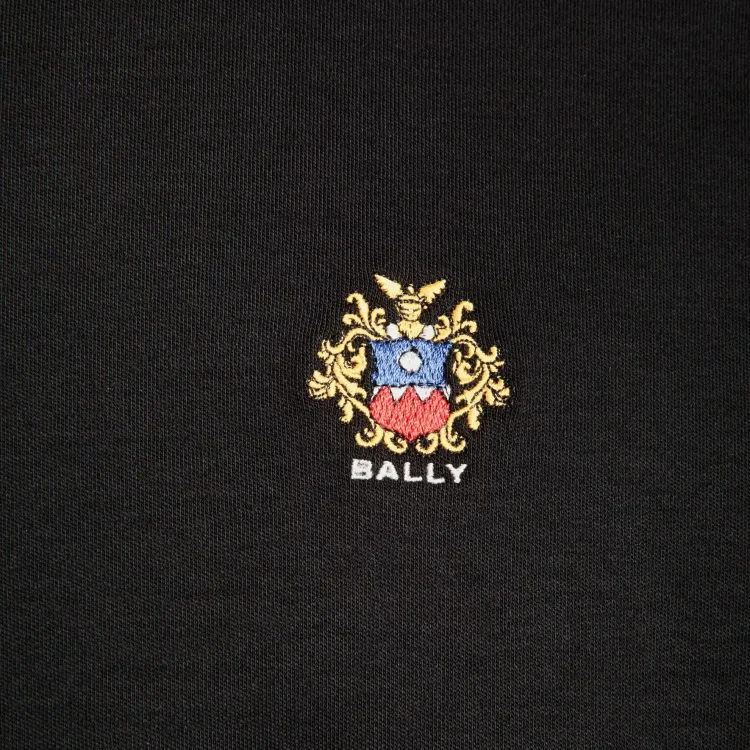 BALLY Логотип Значок Вышивка Круглый вырез Короткий рукав Т-рубашка Мужская Черная