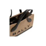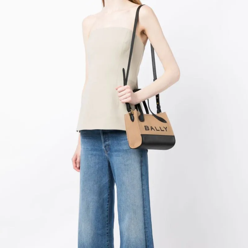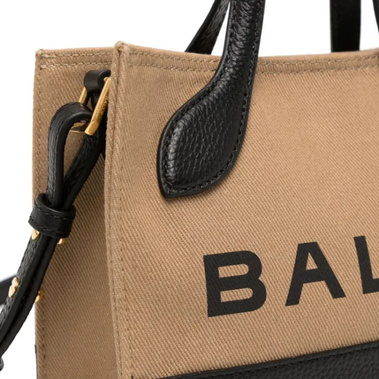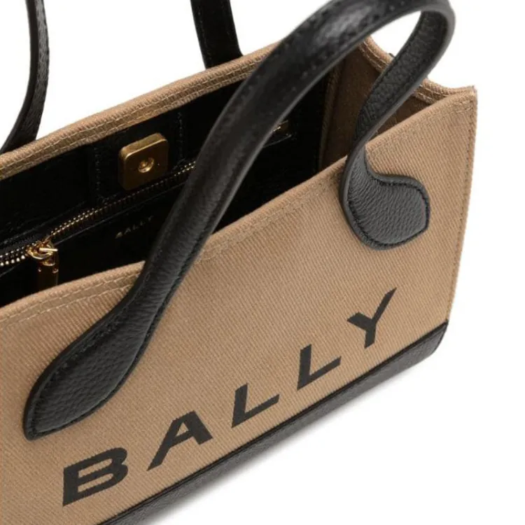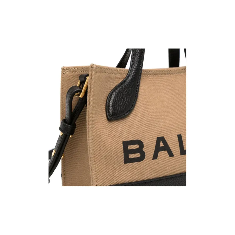 BALLY Органический хлопок с кожаными вставками Тоут Сумка Сумка для покупок Портативная сумка через плечо Сумка через плечо Женская Коричневая