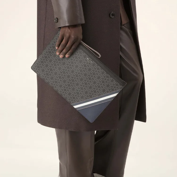 BALLY BOLLIS Корова Кожа Сумочка Клатч Мужской Серый