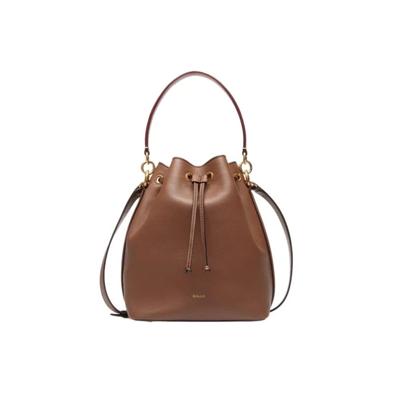 BALLY Телячья кожа Ведрообразная сумка Сумка через плечо Женская Кофейно-коричневая