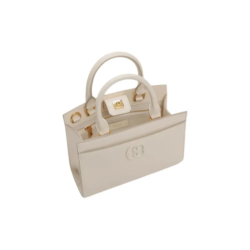 BALLY Emblem Лакированная кожа Телячья кожа Тоут Сумка Сумка для покупок Сумка через плечо Сумка Маленькая Женская Экрю