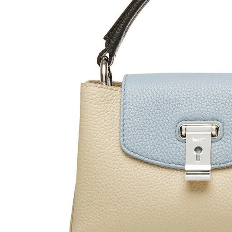 BALLY Layka Коровья кожа Квадратная сумка Сумка через плечо Сумка Мини Женская Бежевая и Синяя