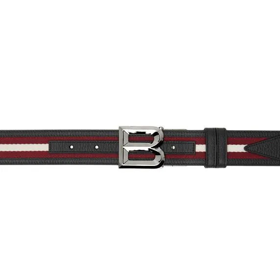 BALLY Кожаные ремни Мужской Черный Красный Ширина 4CM