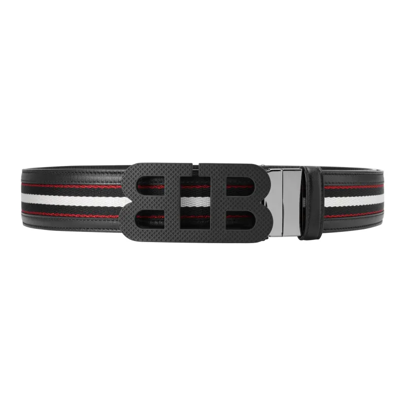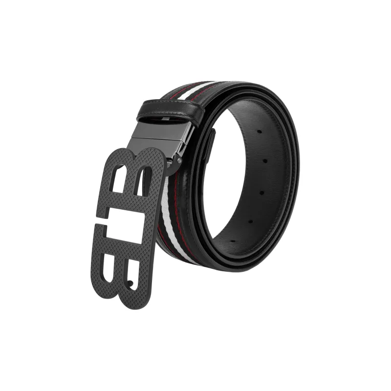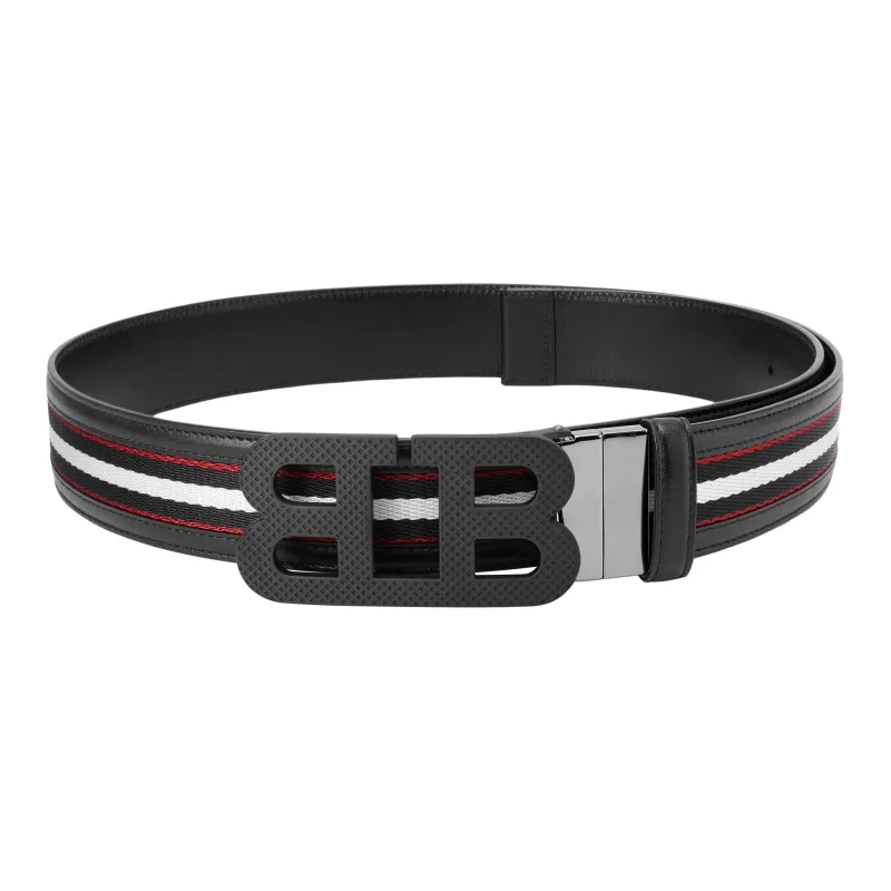 BALLY Зеркальце Коллекция B Логотип Полосы Плавная пряжка Кожаные ремни Унисекс Черный Ширина 4CM