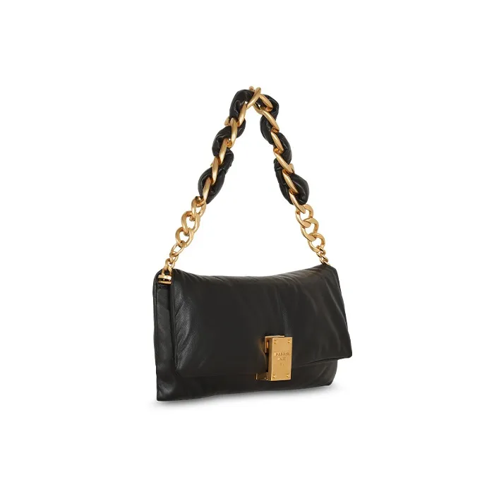 BALMAIN 1945 Гладкий Мягкий Lambskin Переносной Одно Плечо Клатч Женский Черный