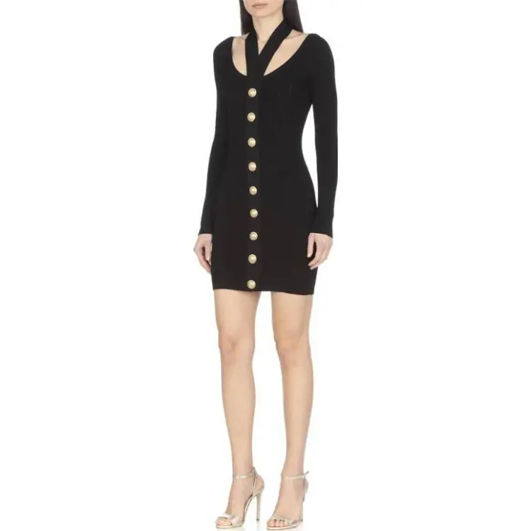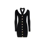 BALMAIN Длинное платье с длинными рукавами женское черное