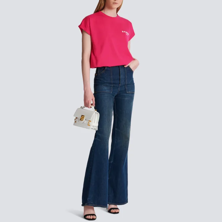 BALMAIN Flocked BALMAIN T-Shirt T-Shirt Женская Красная