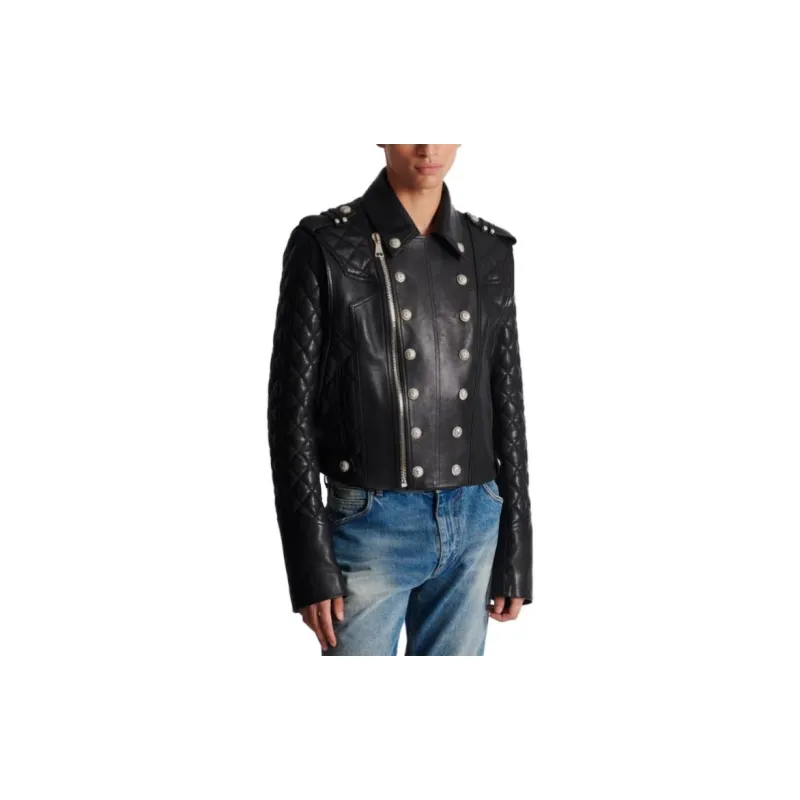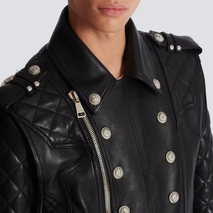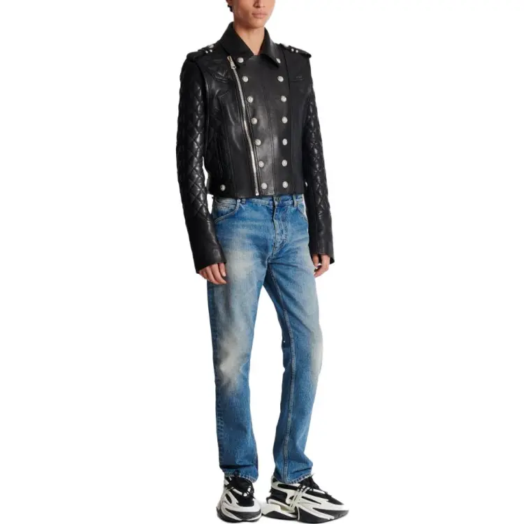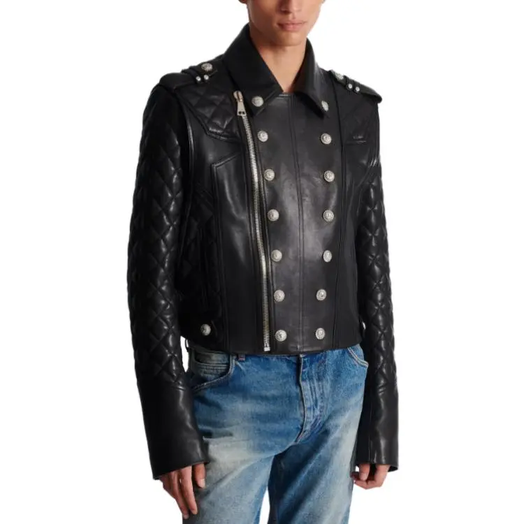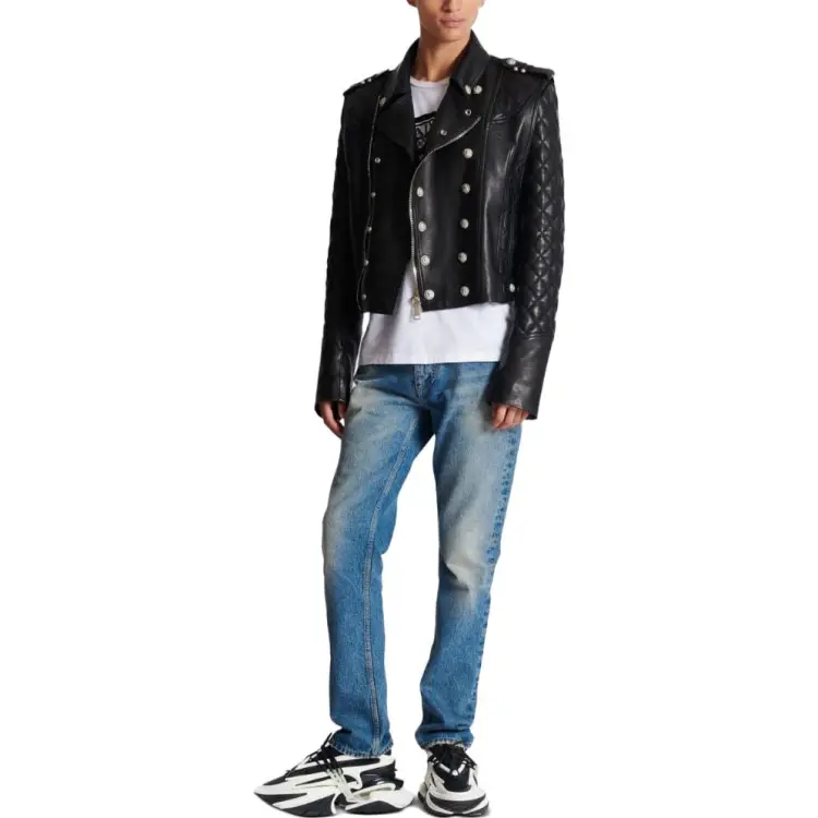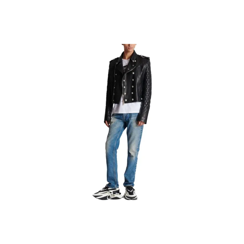 BALMAIN FW23 Кожа Куртка Мужская Черная