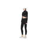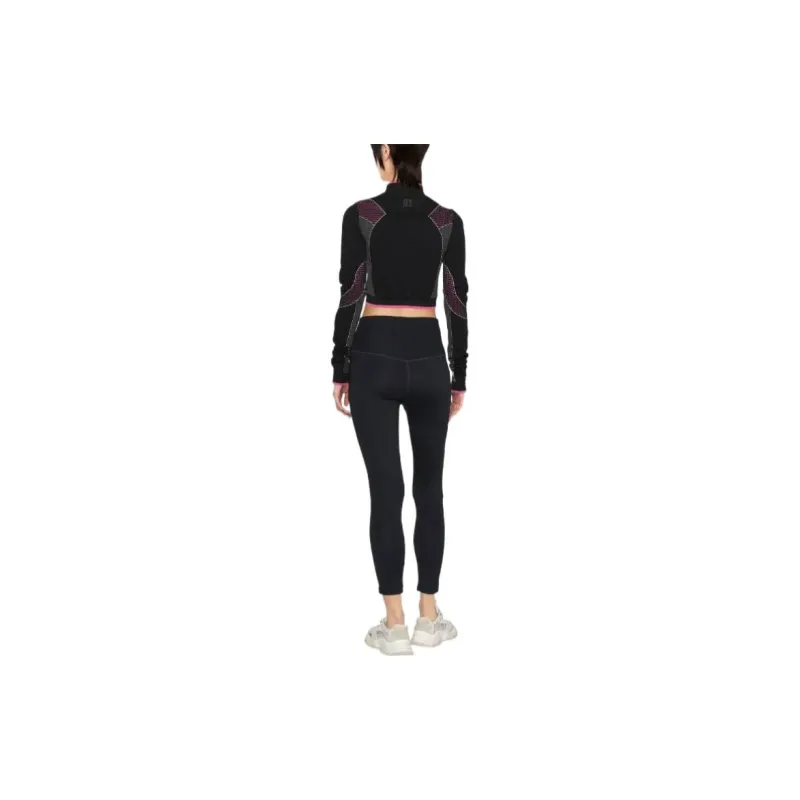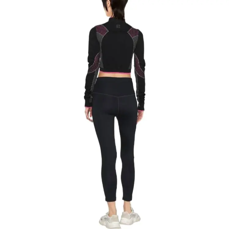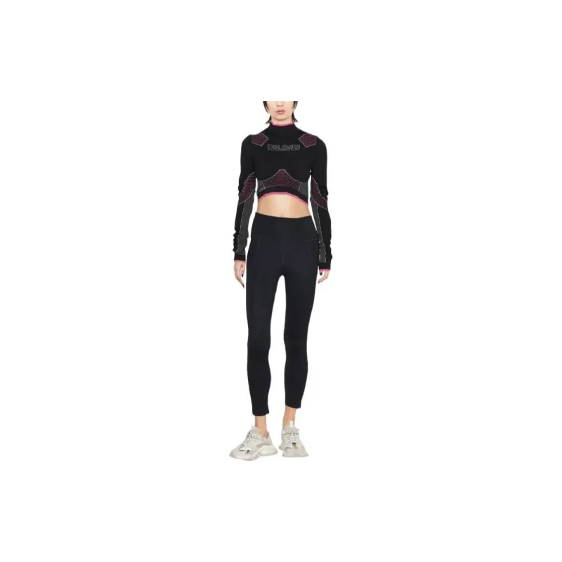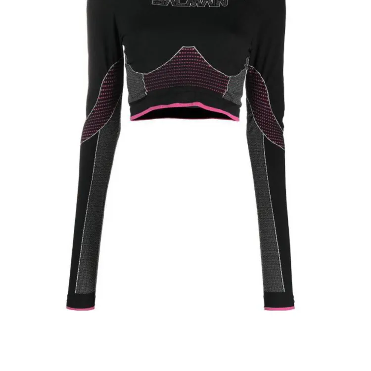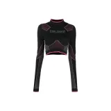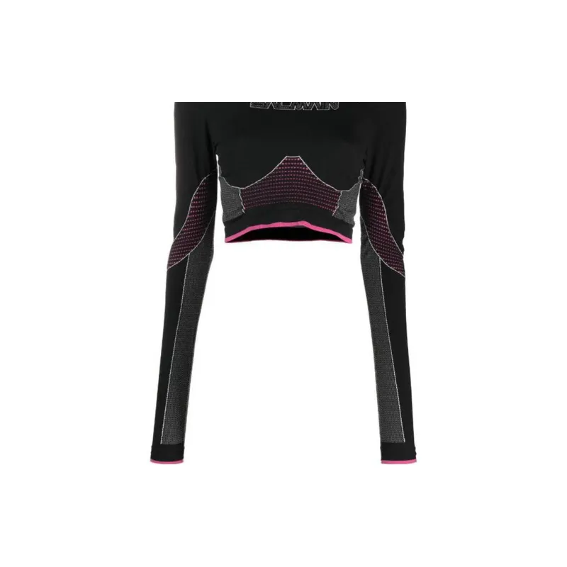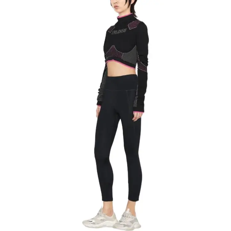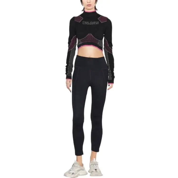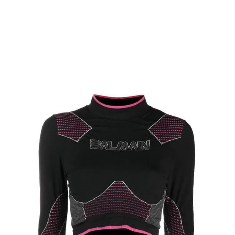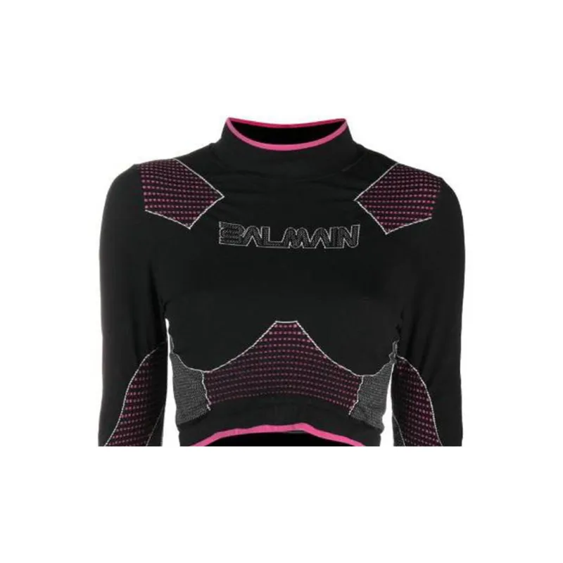 BALMAIN Цветовой блок Пэчворк Логотип с принтом Круглый вырез Длинный рукав Т-рубашка Женская Черная