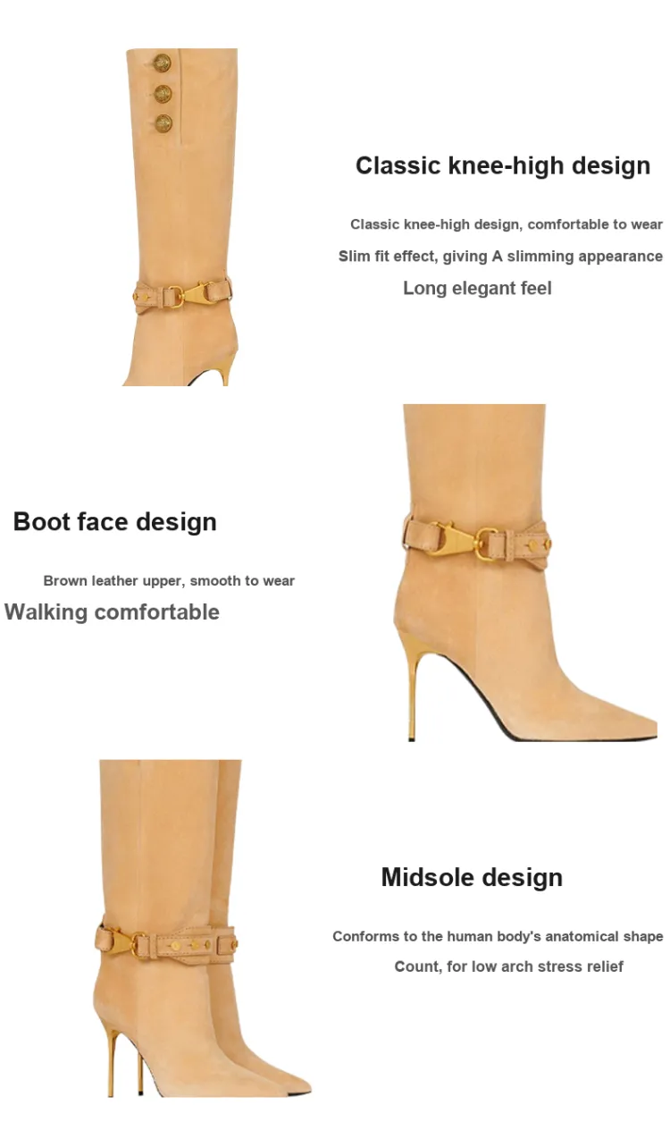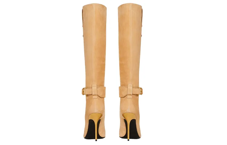 BALMAIN Женские сапоги на высоком каблуке коричневые