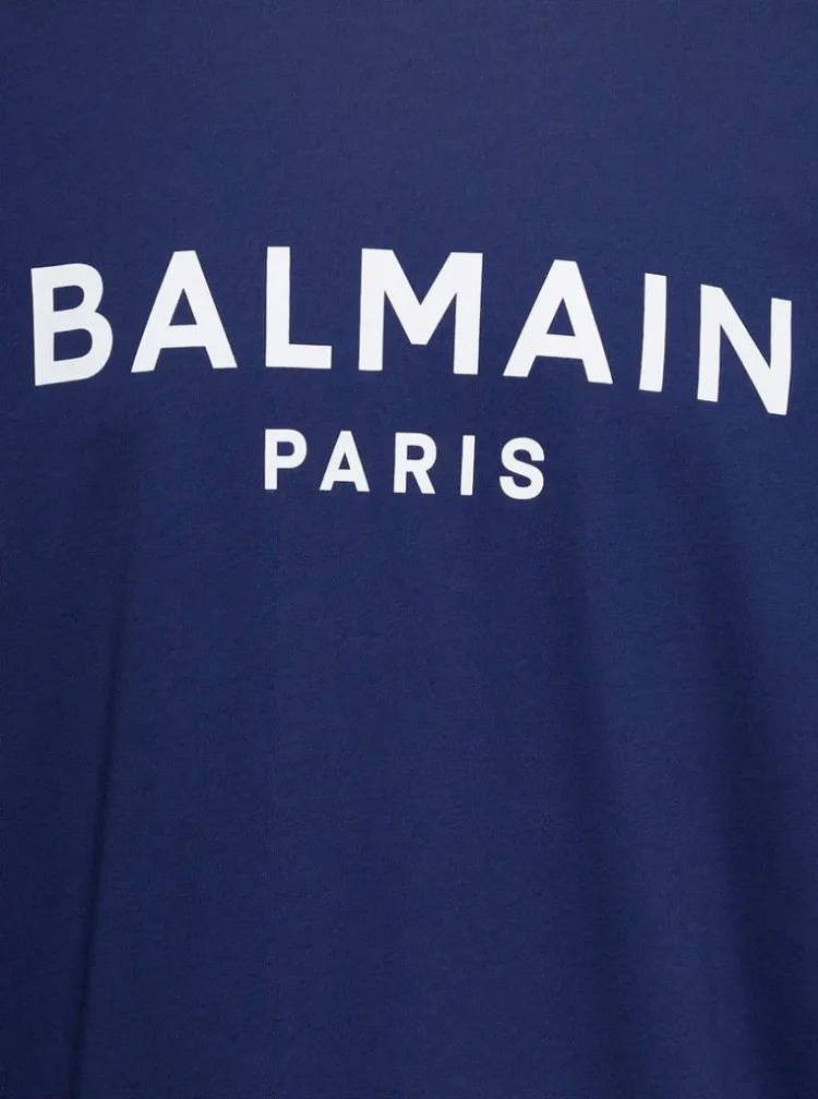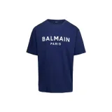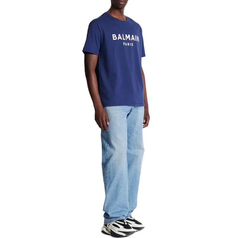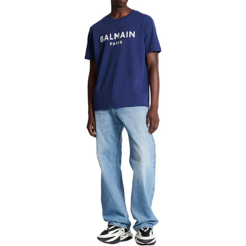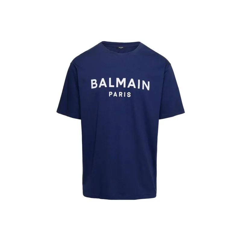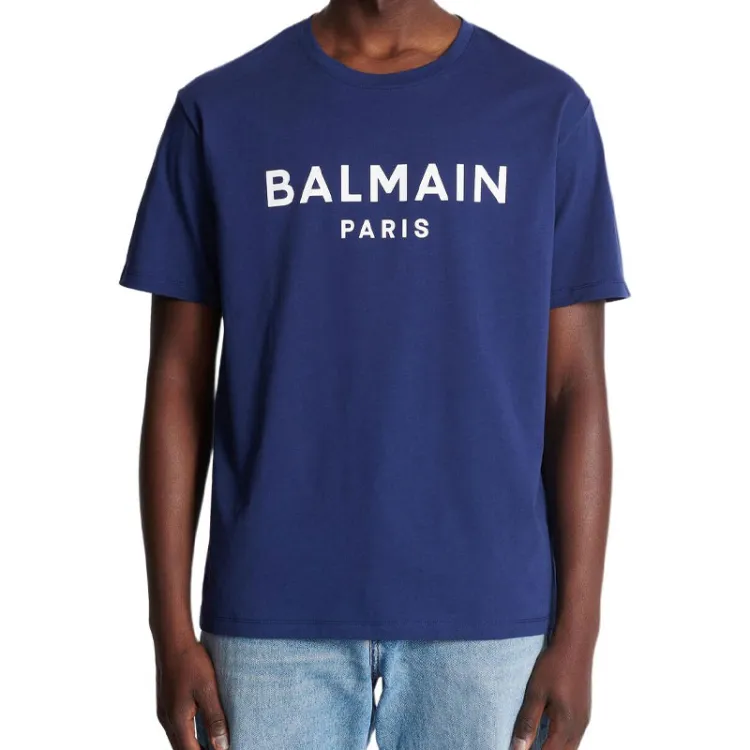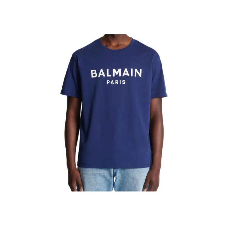 BALMAIN Футболка с принтом Буква C Круглый вырез Короткий рукав Мужская Синий