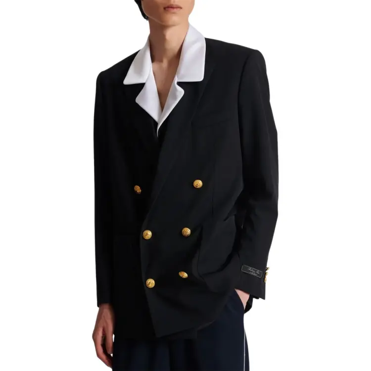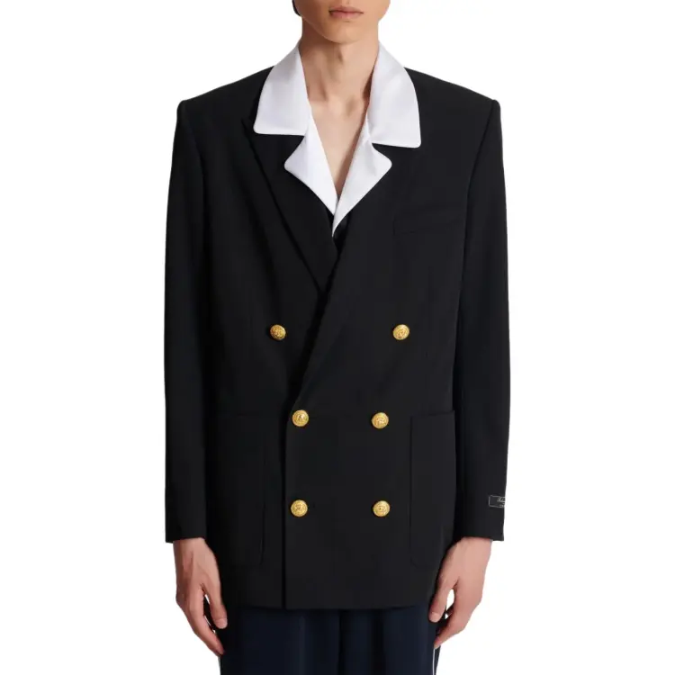 BALMAIN SS24 Бизнес Костюм Пальто Мужской Черный