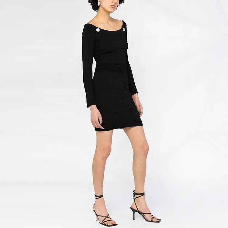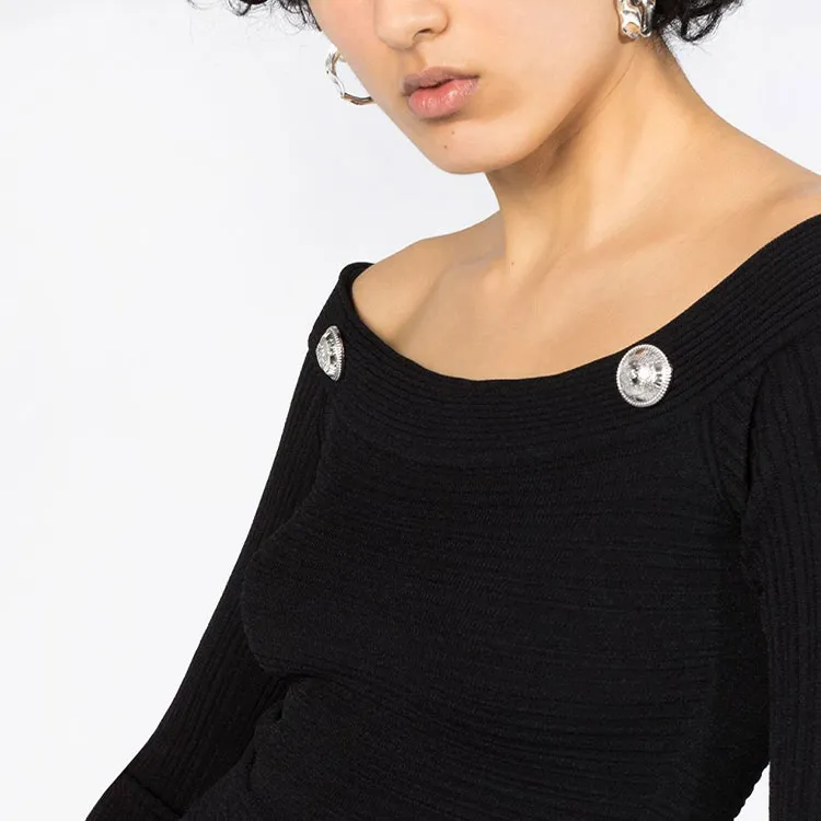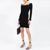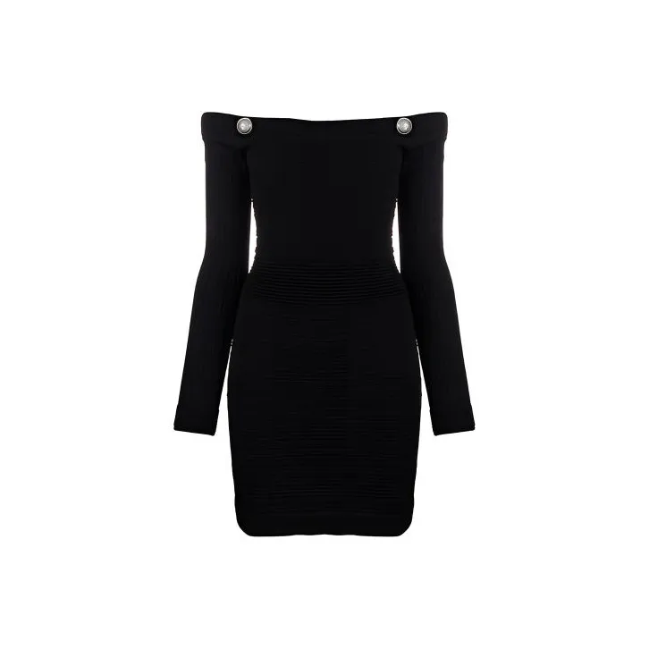 BALMAIN Длинное платье с длинными рукавами женское черное